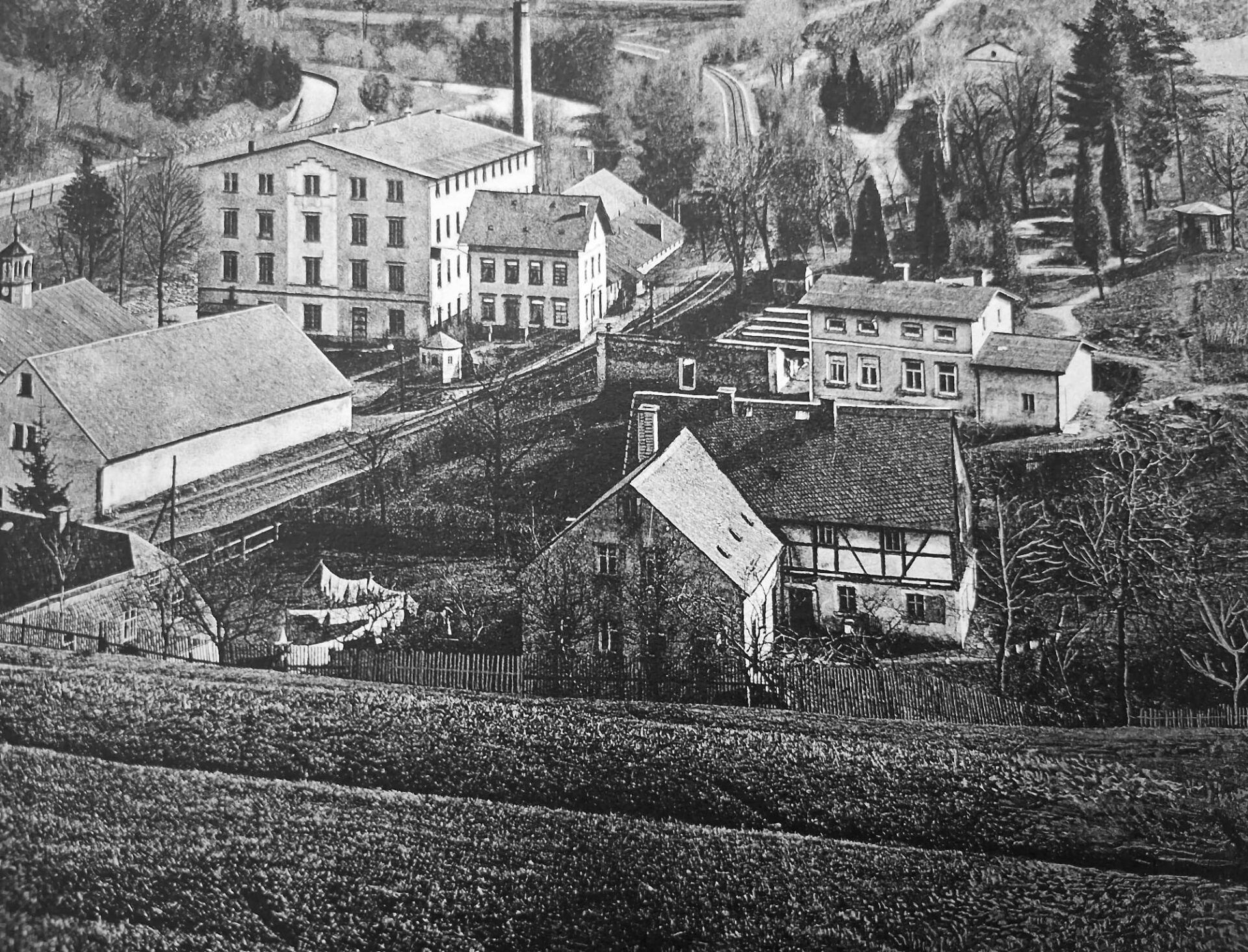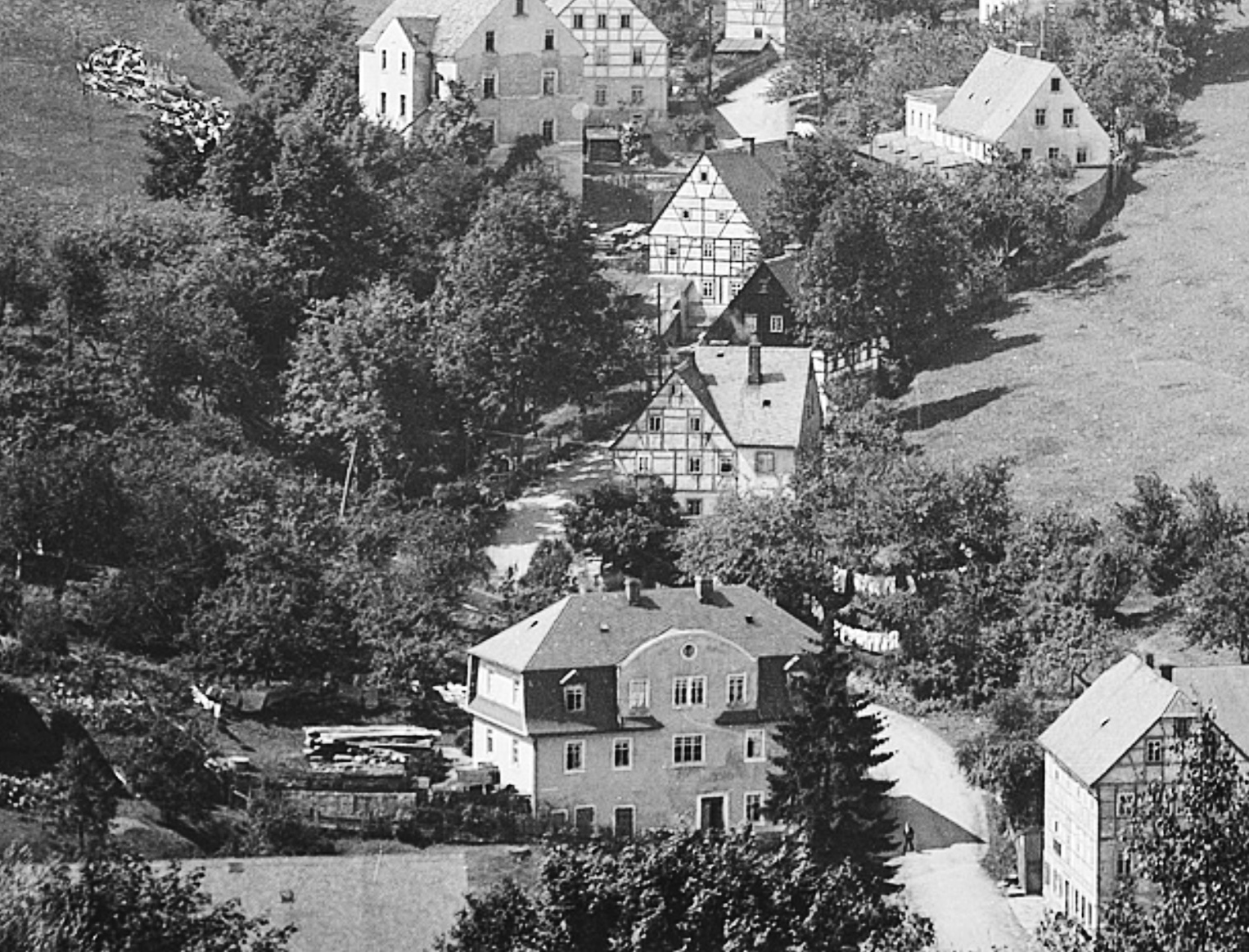 Ein früherer Mühlenstandort ist auf diesem Grundstück durch Bauzeichnungen belegt. Um 1850 wurde hier noch, wie an vielen anderen Standorten, mithilfe der Wasserkraft des Dorfbaches gesägt und gedrechselt.